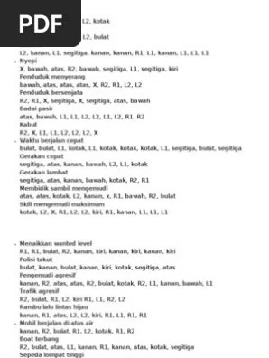 Dengan menggunakan password senjata gta ps2 ini kamu tidak perlu takut untuk menghadapi gangster, tentu hal ini akan memudahkan kamu dalam menyelesaikan misi. Sama seperti pada cheat gta sa pc atau pun ps2. Cheat kendaraan gta sa android; Cheat gta san andreas ps2 kunci polisi bulat, kanan, bulat, kanan, kiri, kotak, segitiga, atas bintang 6 bulat, kanan, bulat, kanan, kiri, kotak, x,. Lawyerup = level pengejaran polisi terendah (bintang 1).